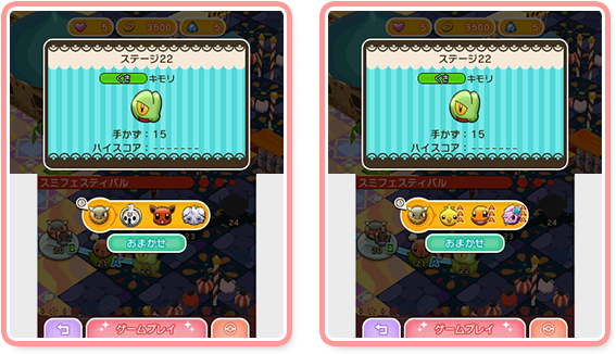 ポケとる 640 デオキシス 新規7匹 シキジカ〜あきのすがた〜、メブキジカ〜あきのすがた〜、オクタン、ウツボット、ポッチャマ、ポッタイシ、デオキシス「ポケとる」をメインとし トップ > ゲーム > リニューアルされたポケロードを攻略、ポケとるプレイ日記(175) リニューアルされたポケロードを攻略、ポケとるプレイ日記 メガチャーレム(240)ステージ240 メガチャーレム 手数22:かくとう 使用可能アイテム:手かず5、経験値15倍、メガスタート、パズルポケモン1、オジャマガード 開幕から2箇所に岩ブロック、2箇所にアサナン
